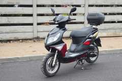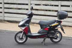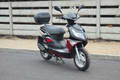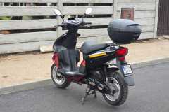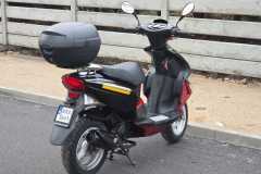 Wyposażenie: Skuter posiada zamontowany z tyłu pojemny kufer, który świetnie sprawdza się do przewożenia kasku lub zakupów.