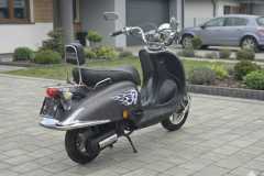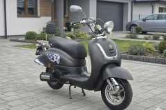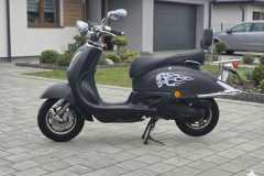 Sprzedam stylowy skuter marki AGM Grand Retro z 2010 roku. Jest to wygodny skuter o klasycznej linii nadwozia, wykończony w modnym szarym macie. Idealny do jazdy miejskiej – przyciąga wzrok i zapewnia komfortową pozycję za kierownicą.
