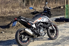 Motocykl jest lekki, zwinny i niesamowicie oszczędny (średnie spalanie widoczne na komputerze przy dynamicznej jeździe to ok. 4.0l/100km). Dzięki Quickshifterowi i świetnemu zawieszeniu WP Apex, jazda nim to czysta przyjemność.