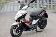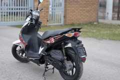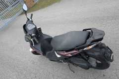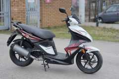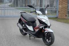 Wizualnie: Skuter prezentuje się świetnie w biało-czarnym malowaniu z czerwonymi akcentami. Lakier jest zadbany, brak pęknięć czy większych zarysowań.