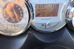 Komfort i praktyczność: Satelis to jeden z najwygodniejszych skuterów w swojej klasie. Posiada ogromny, otwierany jak bagażnik w samochodzie schowek pod kanapą (spokojnie mieści kask i zakupy) oraz wygodne oparcia dla kierowcy i pasażera.